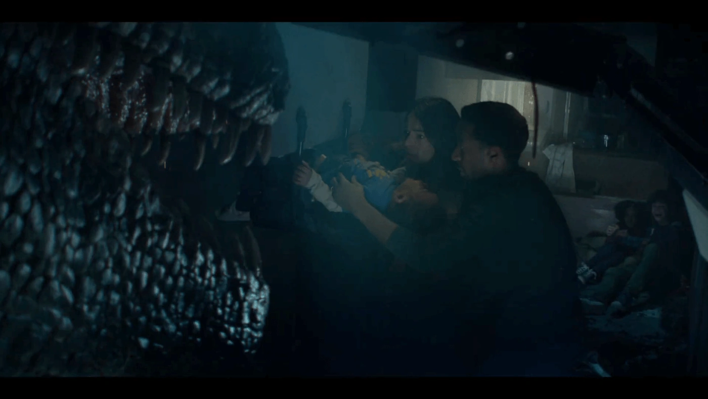 El peligro llegó inmediatamente después en forma de un Allosaurus adulto. El carnívoro procedió a atacar a los dos herbívoros. Mientras los dos animales adultos peleaban, la puerta del remolque se abrió. Dennis se movió lentamente para cerrarlo cuando el Allosaur hirió al Nasuto. Pero luego llegó el macho para salvar a su familia. Fue entonces cuando el hijo menor de Dennis comenzó a llorar atrayendo al Allosaurus para que atacara el remolque y lo golpeara de costado.