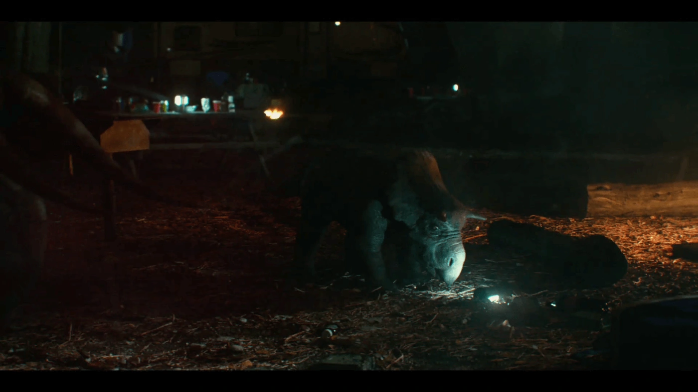 Dennis y su familia se embarcaron en un viaje de campamento al Parque Nacional Big Rock en el norte de California. Se quedarían en un campamento con otros campistas en remolques. Dennis acababa de terminar de asar pollo y preparar la cena para su familia cuando una hembra de Nasutoceratops y su bebé entraron al campamento. Inicialmente, los animales no representaban ninguna amenaza y la familia observaba desde el interior de su remolque mientras Kadasha explicaba de qué especie eran.
