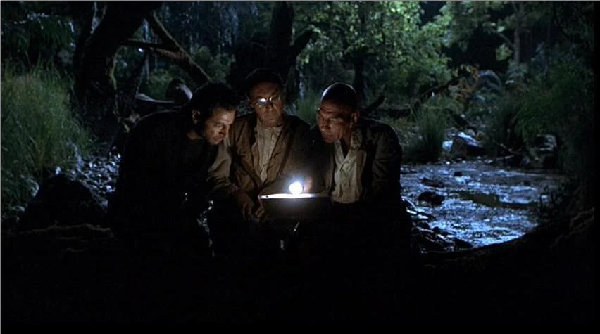 Un lesionado Dr. Malcolm es encontrado por Ellie Sattler y Robert Muldoon tras el ataque de la Tyrannosaurus, Isla Nublar (11/06/1993)
