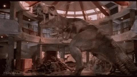 Fang eventualmente descubre cómo escapar del cobertizo de mantenimiento y se dirige al Centro de Visitantes, siendo asechada sin saberlo por la Tyrannosaurus.