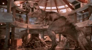 Grant contacta a Hammond y le informa de su éxito, diciéndole que llamara a un helicóptero de rescate. Big One intenta romper el cristal de la sala de control y obliga a los supervivientes a entrar en los conductos de ventilación para escapar. Grant condujo al grupo a través de los conductos de aire hacia donde supuso que estaba ubicada la rotonda del Centro, perseguidos por la rapaz en el camino. Al llegar a la rotonda, encontraron que la única manera de bajar de la ventilación era por medio del andamio de construcción; la raptora los alcanzó en este punto, obligándolos a descender usando la exhibición de fósiles en el medio de la rotonda. El raptor restante entró en el Centro a través de una pared sin terminar, uniéndose a su compañera para arrinconar a los cuatro humanos. El raptor subordinado se aproximó para atacar, sin embargo, la Tyrannosaurus ingresa al edificio por la misma abertura que la rapaz, emboscandola y aplastandola entre sus fauces. Big One ataca al carnívoro más grande en represalia, lo que le a los sobrevivientes la oportunidad de salir del Centro de Visitantes.