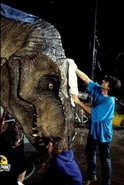 - Cuando el Velociraptor abre la puerta de la cocina, se puede ver la mano de un miembro de la producción que le sujetaba la cola para que se incorpore.
