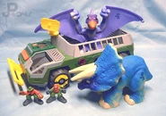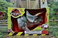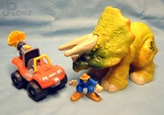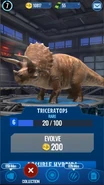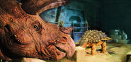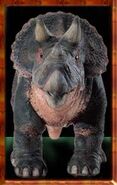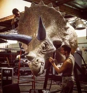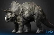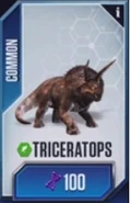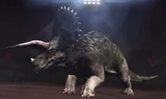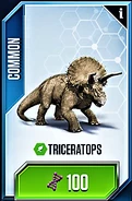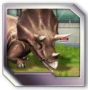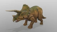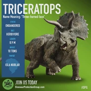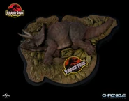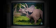 Se planeó que Triceratops fura exhibido en Jurassic Park San Diego, pero este proyecto nunca se completó ya que la operación de los Cosechadores de InGen en 1997 fue saboteada. Un macho adulto y un juvenil fueron recolectados para exhibición en Isla Sorna pero no fueron removidos exitosamente de la isla. Entre 1997 y 2018, las islas del Golfo de Fernández fueron afectadas por cazadores furtivos; se desconoce si alguno de ellos logró asegurar algún triciclo para sus compradores.