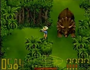 Triceratops tiene la distinción de haber tenido las áreas de recinto más al norte y al sur en Isla Nublar en Jurassic Park.