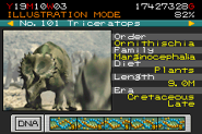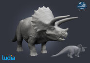 Se ha utilizado evidencia fósil para argumentar que Triceratops presentó dimorfismo sexual, generalmente con cuernos más largos y volantes más grandes que indican que los animales son machos. Sin embargo, la cantidad de individualismo en los restos fósiles hace que esto sea difícil de probar. Los especímenes de InGen también demuestran un cierto grado de individualismo; si bien tanto los machos como las hembras se han identificado de manera concluyente, actualmente no existe una forma confiable de determinar el sexo de los animales basada en una observación visual rápida.