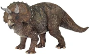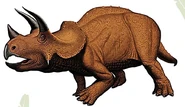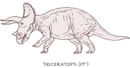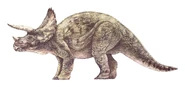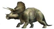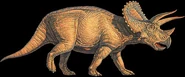 Triceratops (del griego tri-/τρι- ="tres", kéras/κέρας ="cuerno", y -ōps/-ωψ ="cara"; "cara de tres cuernos'") es un género de dinosaurios ceratopsianos ceratópsidos, que vivieron a finales del período Cretácico, hace aproximadamente 68 y 65 millones de años, en el Maastrichtiano, en lo que hoy es Norteamérica. Es uno de los últimos géneros en aparecer antes del gran evento de extinción masiva del Cretácico-Terciario. Llevaba un gran volante del cuello óseo y tres cuernos; cuerpo grande sobre cuatro fornidas patas, y con semejanzas en aspecto con el moderno rinoceronte, Triceratops es uno de los más reconocidos de todos los dinosaurios. Aunque compartiera el territorio con el temible Tyrannosaurus y fuera cazado por él, no está claro si los dos lucharon de la manera representada a menudo en exhibiciones de museo o en imágenes populares.
