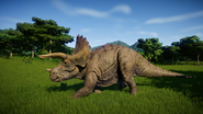En Jurassic World: Evolution, la fuente de alimento preferida de este animal es la cola de caballo, pero también se alimenta de madera podrida y hojas de palma. No es saludable que coma papayas, musgos y cícadas; esto contrasta con otras fuentes hasta 2015 que afirman que Triceratops come cícadas. El juego puede simplemente contener un error en este caso, o los paleoveterinarios pueden haber descubierto este efecto en la salud en algún momento entre 2015 y 2018.