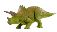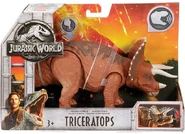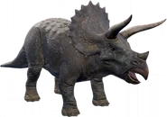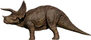 Como adulto, los cuernos del Triceratops son armas formidables incluso contra depredadores muy grandes y su volante protege su cuello de las mordidas. Es presa ocasional del Tyrannosaurus, una relación depredador-presa que se remonta al período Cretácico tardío. Sin embargo, un trike adulto puede ahuyentar a un tiranosaurio usando sus cuernos. Los juveniles son menos capaces de protegerse a sí mismos, confiando en los adultos para protegerse de los depredadores, incluidos los particularmente ambiciosos Velociraptors y Pteranodon. Los terópodos más grandes como Allosaurus y Teratophoneus también pueden representar una amenaza para los juveniles, y los adultos los defenderán vigorosamente. Se sabe que Triceratops vive en territorios habitados por el diminuto Compsognathus, que probablemente no representaría una amenaza importante, así como los terópodos de tamaño mediano Carnotaurus, Ceratosaurus y Baryonyx. Según el Manual del empleado de Jurassic World, escrito por Claire Dearing, el Triceratops a veces es blanco del Carnotaurus. También se ha informado de la presencia de Spinosaurus en áreas donde viven triceratops, pero este animal generalmente caza en o cerca de cuerpos de agua profundos. El omnívoro Gallimimus en ocasiones se pueden encontrar en territorios de trikes, pero aparte de quizás comerse sus huevos, no representaría ninguna amenaza para ellos.