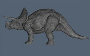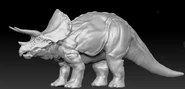 Al igual que con muchos chasmosaurinos, el cuerpo corpulento de Triceratops es en su mayoría anodino. Algunos tienen osteodermos notables en sus cuerpos, pero muchos especímenes carecen de estos. La evidencia paleontológica sugiere que habría tenido púas en su cuerpo, pero estas están ausentes en los animales de InGen al igual que formas similares de tegumento. Como estas características eran desconocidas hasta hace poco, InGen probablemente habría asumido que eran una mutación no deseada si hubieran aparecido en cualquiera de las muestras clonadas.