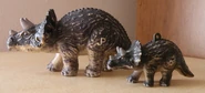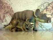 Los adultos también utilizan el contacto físico para consolar a los jóvenes y adolescentes. Una madre puede acariciar a su descendencia con el hocico, o pueden juntar los volantes y frotarlos entre sí. La parte posterior del volante es un área sensible que al Triceratops le gusta frotar.
