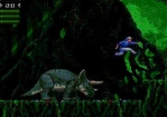 Durante el incidente de 1993, los Triceratops pudieron vagar fuera de su área de recinto, pero no viajaron particularmente lejos. Lady Margaret fue perseguida y asesinada por la Tyranosaurus del parque durante el incidente; esto dejó solo otro triciclo para adultos en la isla, un animal que estaba enfermo por las toxinas de las plantas en ese momento.