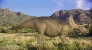 Entre los dinosaurios más comunes de América del Norte, el Triceratops aparece por primera vez en el registro fósil a finales del período Cretácico hace unos 67 millones de años. Al final del período Cretácico, hace cerca de 66 millones de años, tuvo lugar un evento de extinción masiva que acabó con casi toda la megafauna del mundo. Triceratops fue una de las víctimas, extinguiéndose. Más de sesenta y cinco millones de años después, se reencarnó gracias a esfuerzos científicos utilizando muestras antiguas de su ADN, lo que le permitió adoptar una nueva forma genéticamente modificada y caminar por la Tierra una vez más.