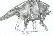 La cola de este animal es relativamente corta y no es extremadamente flexible. Sirve para poco más que el equilibrio, ya que no puede balancearse como un arma eficaz como sus contrapartes herbívoros Stegosaurus y Ankylosaurus.