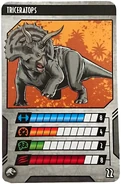 Aparece en muchos Videojuegos como Jurassic Park Arcade, Jurassic Park para Game Gear, Jurassic Park The Lost World Arcade, Jurassic Park Dinosaur Battles, Jurassic Park The Lost World para Playstation, Jurassic Park Sega Genesis y Rampage Edition, Jurassic Park The Lost World Sega Genesis, The Lost World Jurassic Park para Game Gear, Jurassic Park 3 Dino Defender, Jurassic Park 3 Danger Zone, Jurassic Park 3 Scan Comand, Jurassic Park 3 arcade, Jurassic Park Operation Genesis, Jurassic Park DVD Explorer, Jurassic Park 3 Park Builder con el Triceratops Clasico y una rara especie que aparece en Sudamerica que luce como una variacion alterada en su genoma llamado Triceratops Lhorn, pero mas bien es solo un invento de los diseñadores del juego, aparece en el Juego de Snes y en el Ness Game,en el Jurassic Park Builder para Ipod, En jurassic Park The Game hablan de que puede ser que este y Torosaurus sean un mismo animal, pero todavia queda en controversia, en Warpath Jurassic Park, The Lost World Jurassic Park para Game Gear y en Trespassers hace aparicion tambien este dinosaurio. Aparece en varias lineas de muñecos y juguetes varios de la franquicia. Tambien aparece en los comics de Topps y Jurassic Park Redemption y Jurassic Park Dangerous Games. En la linea de juguetes Jurassic Park Chaos Effect forma parte del Ultimasaurus (Tyrannosaurus rex + Triceratops + Stegosaurus + Ankylosaurus + Velociraptor) y un poderoso Triceratops mutante llamado Chaos Triceratops. Aparece en el folleto de especies de Jurassic World, destacando que aparecen versiones bebe en el zoologico de gigantes gentiles donde los niños pueden montarlos. Ademas algunas figuras de accion de la pelicula incluido el mutante Stegoceratops (Triceratops + Stegosaurus). Recientemente aparece en el plantel de dinosaurios del Jurassic World The Game para IOS donde forma parte del hibrido Stegoceratops (Stegosaurus + Triceratops) y dos versiones hibridas mejoradas, estos son los jefes Juggernaut 32 y Vulcan 19, LEGO Jurassic World, y el Jurassic Park arcade 2015, ademas de estar en los artes conceptuales de la cancelada serie animada de Jurassic Park.La difunta pagina de Jurassic Park Institute muestra no solo al triceratops si no tambien a su sinonimo el Ugrosaurus. Es tambien parte del plantel del juego Jurassic World: Evolution y esta confirmado para la secuela de Jurassic World, Jurassic World Fallen Kingdom, Mattel lanzo sus muñecos de este dinosaurio para el estreno, tambien esta entre las especies del juego Jurassic World: Alive donde puede formar al Dracoceratops (Dracorex GEN 2 + Triceratops GEN 2) osea versiones GEN 2 de los originales Triceratops y Dracorex, ese hibrido puede unirse con el Proceratosaurus para formar al super hibrido Dracoceratosaurus, al Stegoceratops y este a su vez puede fusionarse con el Monolophosaurus y formar al Monostegotops y tambien aparece en el Jurassic World Facts de Mattel para dispositivos moviles.