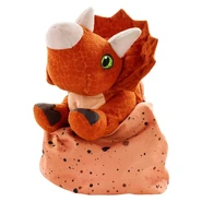 Al salir del cascarón, los triceratops miden menos de un pie de largo. En esta etapa, su coloración generalmente se parece a cómo se verán cuando sean adultos. Los cuernos comienzan como pequeñas protuberancias romas de aproximadamente una pulgada de largo, creciendo a medida que el animal envejece hasta la adolescencia. El cerebro tiene aproximadamente el tamaño de una avellana a esta edad. Sus epoccipitales están ausentes cuando eclosiona, pero en algunos especímenes crecen relativamente rápido. Para cuando se convierta en adolescente, al menos algunos de los epoccipitales se habrán formado, lo que significa el acercamiento a la edad adulta. Los trikes jóvenes consumen aproximadamente 24 libras de materia vegetal al día, y esta cantidad aumenta a medida que crecen. Los juveniles pueden distinguirse por la forma de sus cuernos, que son rectos y apuntan hacia arriba. A medida que envejecen, los cuernos comenzarán a curvarse hacia adelante. Las crías y los juveniles ya pueden mostrar el desarrollo de los epijugales, aunque a menudo solo uno se habrá desarrollado a estas alturas. Los adultos pueden tener dos. En general, la ornamentación ósea de la cabeza del triceratops es más redondeada en los animales jóvenes y se vuelve más nítida a medida que se acercan a la madurez. A medida que la ornamentación del animal crezca, frotará sus cuernos contra objetos como árboles para ayudar a desprenderse de las capas externas.
