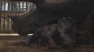 El 23 de junio de 2018, se vieron los restos desecados de un Triceratops adulto en lo que alguna vez fue el Valle del Gallimimus. Se vieron tres adultos vivos cerca del monte Sibo. Una escena eliminada habría mostrado a un joven en la misma área en ese momento, junto a su padre. Fueron conducidos hacia los acantilados orientales por la erupción volcánica que tuvo lugar el día. Otros tres adultos y un menor fueron sacados de Isla Nublar el 23 de junio por medio del SS Arcadia ; todos los que quedan viviendo en la isla probablemente murieron debido a ahogamiento, escombros volcánicos y otros peligros volcánicos, o por la pérdida de sus fuentes de alimento.