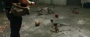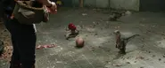La mort de Charlie est exactement la façon dont l'un des Velociraptors tuant John Arnold est tué par Robert Muldoon dans le chapitre "Contrôle IX" du roman Jurassic Park en étant réduit en miettes par un lance-roquettes.