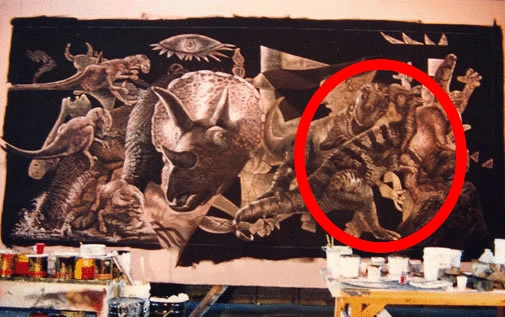 - Un Corythosaurus est représenté sur la peinture murale du restaurant au Centre d'accueil[5].