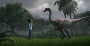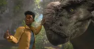 - Lorsque Darius est tombé sur les ruines de l'ancien centre d'accueil de Jurassic Park, avec Kenji et Yaz, on estime qu'il avait entendu l'histoire du premier parc.