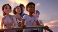 Le groupe se rassemble et, au milieu de la tempête, le carton d'œufs (qui comprenait l'œuf de Tite Bosse) tombe par-dessus bord. Kenji saute par-dessus bord et le groupe court vers un canot de sauvetage. Le capitaine est sur le point de retenir Darius, mais M. Sullivan le convainc de laisser partir le groupe en raison de son aide dans la panne de courant. En utilisant le canot de sauvetage, le groupe parvient à sauver Kenji. Alors que le groupe s'accroupit dans le canot de sauvetage, ils peuvent le voir s'approcher de la terre. Darius donne le numéro de téléphone de Ben Broklynn pour savoir où ils se trouvent.