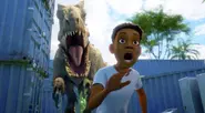 Kenji accuse Darius de ne pas être là s'il était amoureux d'elle, mais avant que Darius ne puisse répondre, un véhicule s'approche et ils se cachent tous les deux. Ils sont témoins de camions DAP engagés dans la vente illégale d'un Baryonyx capturé. Kenji et Darius décident de suivre le camion pour savoir qui fait l'achat du dinosaure.