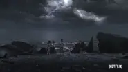 Cette nuit-là, Darius raconte l'histoire d'un T. rex traquant certaines personnes avant d'être interrompu par les autres campeurs, autour d'un feu de camp, mais tout à coup il a commencé à pleuvoir et ils ont été forcés d'entrer.