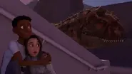 Darius et Brooklynn parviennent à atirer le T.rex dans un beuet d'arbre, s'échappant de justesse. Ils semblent être en sécurité, jusqu'à ce qu'ils entendent le cri de Pteranodons au-dessus d'eux et que Darius ait l'idée de les alerter en leur lançant des pommes de pin. Les Pteranodons se mettent en colère, se précipitent et, attirant l'attention du T.rex, sont poursuivis par eux, permettant à Darius et Brooklynn de s'échapper. Le reste du groupe arrive et découvre que Sammy a réussi. Ceci est encore démontré lorsque la famille T.rex arrive au point d'eau et procède à coexister pacifiquement avec les autres dinosaures et que le groupe joue dans le point d'eau.