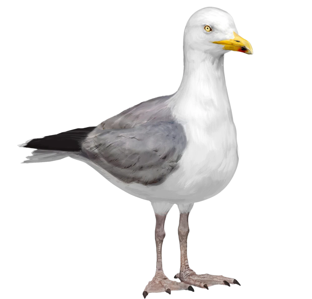 Les adultes sont blancs, avec le dos et les ailes gris, le bout des ailes noir tacheté de blanc et les pattes roses. Les jeunes oiseaux sont gris-brun et plus foncés et uniformes que les goélands argentés, avec une queue plus foncée. Comme c'est souvent le cas pour les autres goélands, on les appelle familièrement « mouettes ».