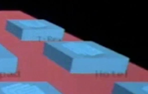 Concept art du centre d'accueil où l'hôtel aurait pu être situé de l'autre côté du pont.