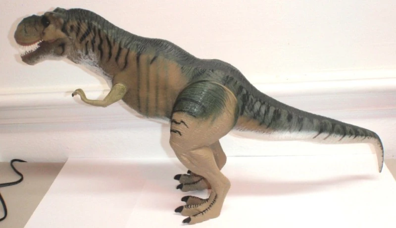 - Action de raclée : si le joueur déplace la queue de ce jouet d'un côté à l'autre, sa tête se déplacera dans la direction opposée, similaire à la scène du premier film lorsque Rexy a attaqué Donald Gennaro. Cette fonctionnalité peut également être utilisée pour libérer le t rex de son équipement de capture.