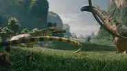 - De manière assez déroutante, le Pr. Loomis affirme que l'espèce ne pèse que 11 tonnes à l'écran. Ce chiffre est assez proche du poids réel du Titanosaurus, mais bien inférieur à celui de l'écran et des sauropodes précédents de la franchise.