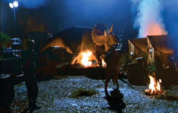 - Stan Winston Studio a construit un animatronique de Triceratops de 7 mètres pour Jurassic Park qui reposait sur le côté avec une cage thoracique, une bouche et une queue mobiles.[15]