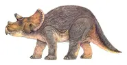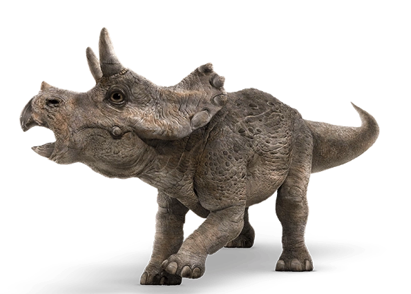 Triceratops est un genre éteint de dinosaure cératopsidé chasmosaurine herbivore qui vivait à la toute fin du Crétacé. Il avait une énorme tête à collerette avec des cornes sur chaque œil pouvant atteindre plus de 91 cm de long. Le Triceratops avait une troisième corne plus petite sur son nez. Ce seraient des armes redoutables contre un prédateur.[1]