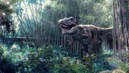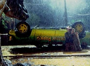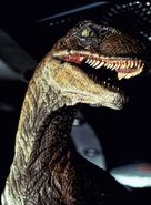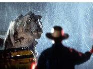 彼らの目の前に巨大なティラノサウルスが現れ、襲いかかってきた。ジェナーロが食われてしまい、子供たちを助けようとしたマルコム博士は重傷を負ってしまう。グラントと子供たちはフェンスの向こうへ逃げ、ビジター・センターへと急ぐ。ネドリーはディロフォサウルスに襲われてしまう。グラントたちを捜しに出たエリーは、マルコムを助け、ティラノに追われながらもセンターへ帰還する。システムを元に戻すため落ちたブレーカーを戻すためエリーは電気室へ。しかしそこには凶暴で知能の高い小型恐竜ヴェロキラプトルが潜んでいた。