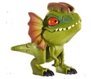 イスラ・ソルナ島にて17頭のディロフォサウルスが再生され、数ヶ月飼育されるとイスラ・ヌブラル島へ運ばれた。その後、金に目がくらみ自分にぞんざいな扱いをしていたインジェン社を裏切り、パークを混乱に陥れた元凶である小悪党なデブが自分の眼鏡を落としてしまったときに現れ、エリマキを広げて彼の顔面に毒を吐きつけ、そのまま襲って殺害した。