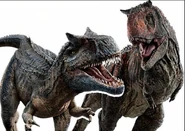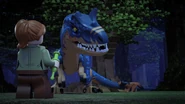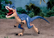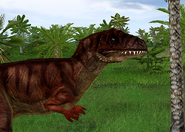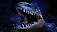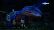 Аллозавр пытается запугать стаю, издавая сильный рёв, но рапторы нападают на него по приказу Оуэна. Вскоре ему удаётся скинуть их со спины, но их это не останавливает, и они надвигаются на него. Аллозавр ещё раз делает попытку запугать их, но безуспешно, поэтому он убегает в лес из-за агрессивного поведения меньших теропод.