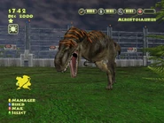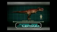 В финальной игре присутствуют только три Альбертозавра; в первый раз это видно после падения с обрыва в «Промышленных джунглях», охота на Паразауролофа наряду с рядом велоцираптором. Два других Альбертозавра расположены на первом уровне «Восхождение». Первого альбетозавра можно убить пулеметом, установленным на потерпевшем крушение грузовике, а второго и третьего можно прикончить с помощью Токсичного оружия, оружия, которое может прибить животное только одним выстрелом.