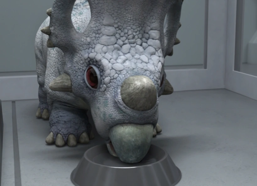 В районе 2016 года, Mantah клонировала двух особей гибрида "Спиноцератопс", одна из которых самка, а второй- самец. Новорожденных гибридов поместили в разные комнаты мед отсека, где после определённого промежутка времени, их нашли туристы Мелового лагеря, которые не по своей воле попали на остров.