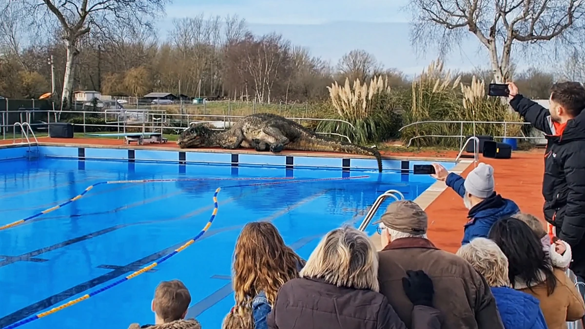 Взрослый барионикс был снят в Бекклс, Англия, когда он плавал в бассейне Beccles Lido рано утром, а затем спал рядом с ним. Эта особь, вероятно, была перевезена туда благодаря вмешательству человека; рост популяции барионикса, вероятно, был вызван незаконным разведением и торговлей животными. Взрослый, которого видели в Бекклсе, вероятно, попал туда, следуя по реке Уэйвни после того, как его выпустили в Великобританию. Это первый барионикс, замеченный в дикой природе за пределами Северной Америки с мелового периода.
