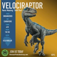 В июне-мае 2016 года группа туристов, которые застряли на острове, проникли на её территорию, чтобы забрать компас у одного из компсогнатов. Блю заметила детей и атаковала их, желая прогнать со своей территории. Ребятам удалось спрятаться в машине, а затем снять её с ручника. Машина двинулась с места, но в результате аварии, перевернулась, придавив Блю. Велоцираптор стала легкой наживой для компсогнатов, но дети помогли ей выбраться, а затем сбежали.