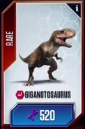 В мобильной игре Jurassic Park: Builder гиганотозавр является "золотым" по меркам режима Битв и Турнира динозавром. Его ДНК можно добыть лишь из Турнира ДНК.