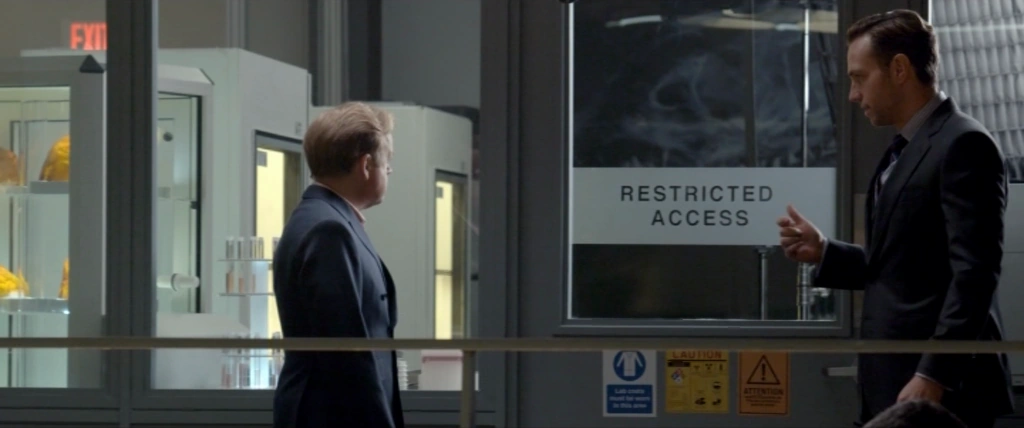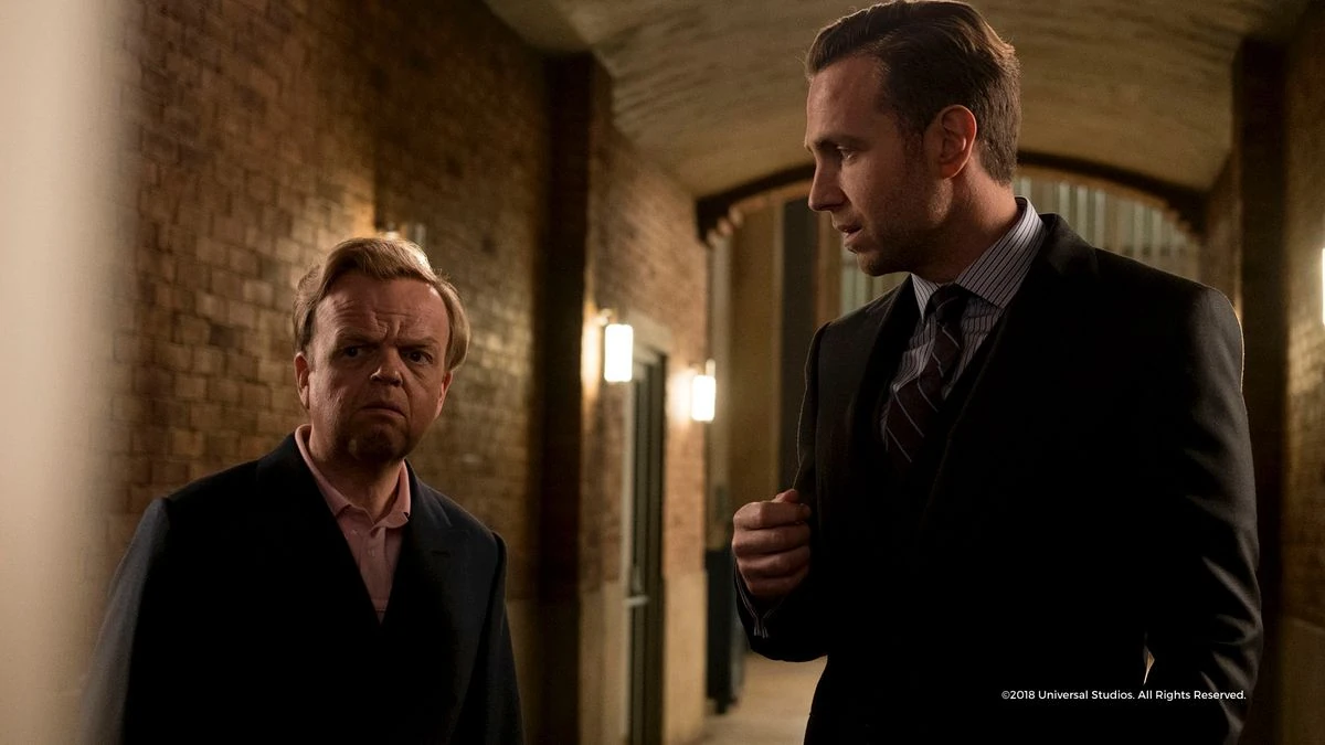 Смешок Эверсолла, который он издал после того, как двери лифта закрылись, был добавлен на стадии переозвучивания: на съёмках Тоби Джонс просто выдохнул.