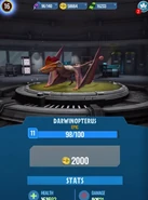 Дарвиноптерус является турнирным динозавром. Дарвиноптерус разблокируется, если выиграть пакет Дарвиноптеруса либо в рулетке, либо если игрок попадет в 1% лучших игроков одноименного турнира. Дополнительных особей можно купить на рынке за 7500 ДНК или найти в наборах карт. Как и все существа в игре, его характеристики можно улучшить, путём повышения уровня.