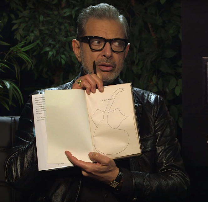 - В интервью по выходу Jurassic World: Evolution с английским геймером TheGamingBeaver Джефф придумал гибрида брахиозавра и трицератопса и нарисовал его на листе книги "Затерянный мир":