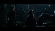 В 2022 году трое дилофозавров в лесу Долины Biosyn наткнулись на нового нарушителя - Клэр Диринг. Диринг пыталась забраться на просмотровую башню, однако на ней заклинила лестница, вынуждая её оставаться на земле и подвергнуться нападению дилофозавра. Динозавр вскоре начал атаку, раскрыв капюшон и готовясь выплюнуть яд, но к Диринг вовремя подоспели её коллеги: Оуэн Грейди и Кайла Уоттс, которые блокировали выстрел дилофозавра, зажав его ядовитые мешки, и ударив его током с помощью электрошокера.