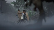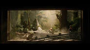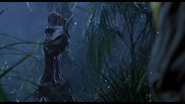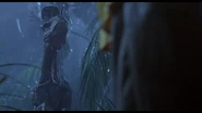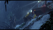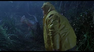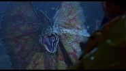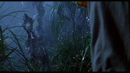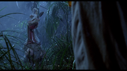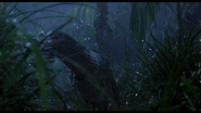 Через 6 месяцев после катастрофы, грозовой ночью, один из дилофозавров, находясь рядом с бассейном мозазавра, чует приближение крупного хищника, кем являлась самка тираннозавра, и убегает в глубь джунглей, издавая зов, пугая находившегося рядом Джека во время его работы. Это позволяет предположить, что некоторые из дилофозавров жили в этом районе.