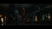 Этим же днём позднее, во время массового пожара всего заповедника, тоннель вакуумной транспортной сети Hyperloop был вырублен из-за непредвиденного инцидента с безопасностью и трое дилофозавров вошли в туннели поезда через ранее сломанный Гиганотозавром охранный пост. В это же время из капсулы вынудило выйти Льюиса Доджсона, который привлёк внимание хищников. Они ворвались в капсулу Hyperloop и напали на Доджсона.