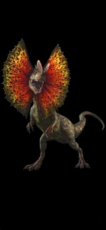 Дилофозавр попал в список InGen для Парка Юрского периода на Исла Нублар, когда компания обнаружила его ДНК и клонировала, опознав животное по внешнему виду.