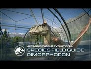 Диморфодон - один из летающих видов в игре, что доступен в базовой версии Jurassic World Evolution 2. Впервые о его появлении в игре стало известно из специального путеводителя по видам, выпущенного 4 августа 2021 года. Это была вторая летающая рептилия, представленная в игре после птеранодона. Диморфодон - один из самых маленьких летающих рептилий, представленных в игре. Он меньше других видов птерозавров, весит всего несколько килограммов и имеет размах крыльев около двух метров, но он примечателен размером своей головы, которая была намного больше, чем у похожих соразмерных птерозавров, вроде Птеродактиля. Его название переводится как «две формы зубов».