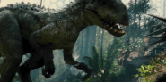 Клэр Диринг выманивает местногоТираннозавра, провоцируя территориальный конфликт между двумя тероподами. Индоминус, несмотря на преимущество более опытного ти-рекса, одолевает его, но к битве присоединяется уцелевший раптор Блю.
